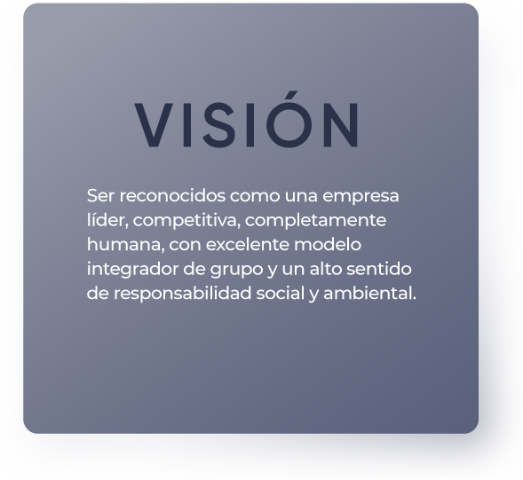Ser reconocidos como una empresa líder, competitiva, completamente humana, con excelente modelo integrador de grupo y un alto sentido de responsabilidad social y ambiental